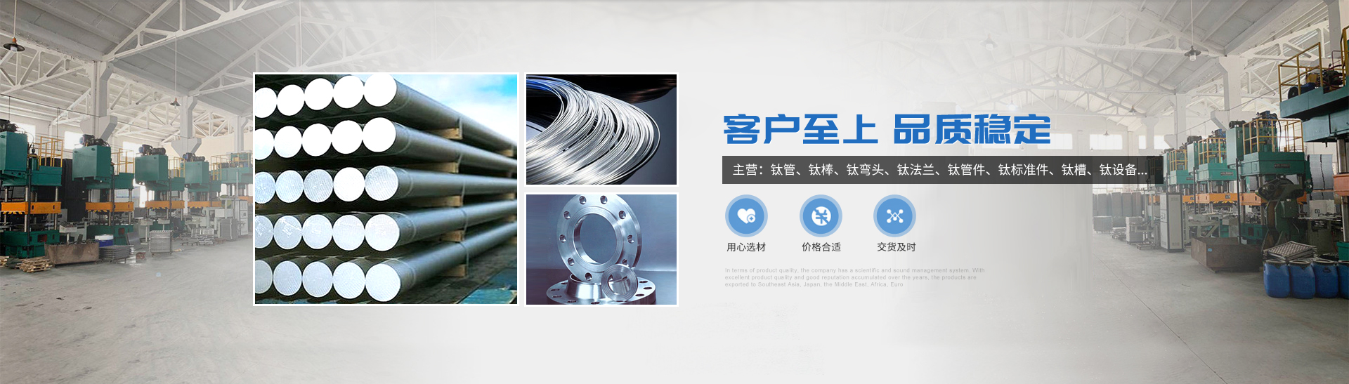 本公司的主營(yíng)產(chǎn)品鈦制品有,鈦管,鈦棒,鈦彎頭,鈦法蘭,鈦管件,鈦標(biāo)準(zhǔn)件,鈦槽,鈦設(shè)備,鈦沖壓彎頭等。所生產(chǎn)各種規(guī)格的鈦制品主要運(yùn)用于化工、電鍍、石油、電子、環(huán)保、海洋等領(lǐng)域"以質(zhì)量求生存,靠服務(wù)求發(fā)展“為宗旨,客戶的滿意是我們的追求,歡迎各界用戶來(lái)函來(lái)電,傳真,洽談貿(mào)易。